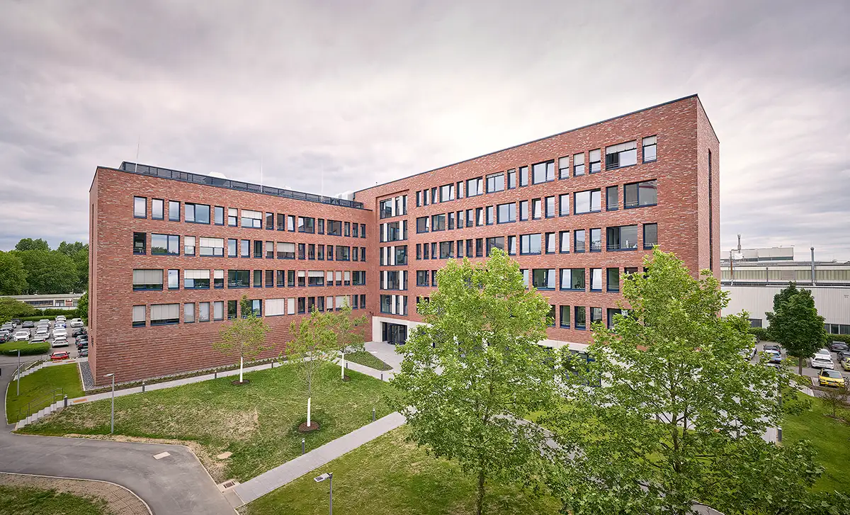Mit dem Lippewerk im Lüner Ortsteil Lippholthausen betreibt der Entsorgungskonzern REMONDIS auf rund 230 Hektar Europas größtes Zentrum für industrielles Recycling. Etwa 1.400 Menschen sind dort beschäftigt. Auf diesem Gelände entstand das neue Verwaltungsgebäude V11. Der fünfgeschossige Backsteinbau mit Sichtbetonfertigteilen wurde bewusst an die industrielle Architektur des Lippewerks angelehnt. Im Erdgeschoss öffnen sich ein großzügiges Foyer und Schulungsbereiche. In den Obergeschossen finden sich offene Arbeitslandschaften, abgeschlossene Büros, Aufenthaltszonen und Besprechungsbereiche. Zusätzlich ist im Objekt ein hochmodernes Rechenzentrum untergebracht – ein Bereich, der besondere Anforderungen an Brandschutz, Planung und Baulogistik stellt.